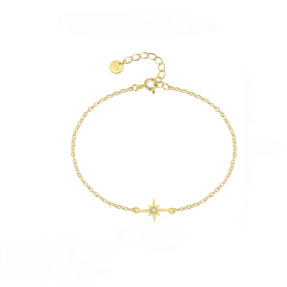 Pulsera de plata 925 con baño de oro con dije de estrella Medida: 16 cm + 3 cm adicionales para ajustar