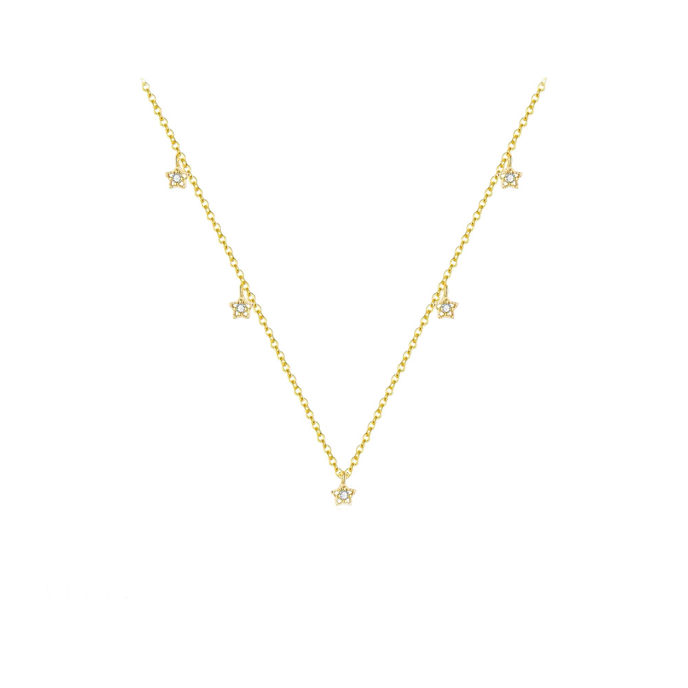 Cadena de plata 925 con baño de oro y dijes de mini estrellas. Medida: 40 cm + 5 cm adicional ajustables.
