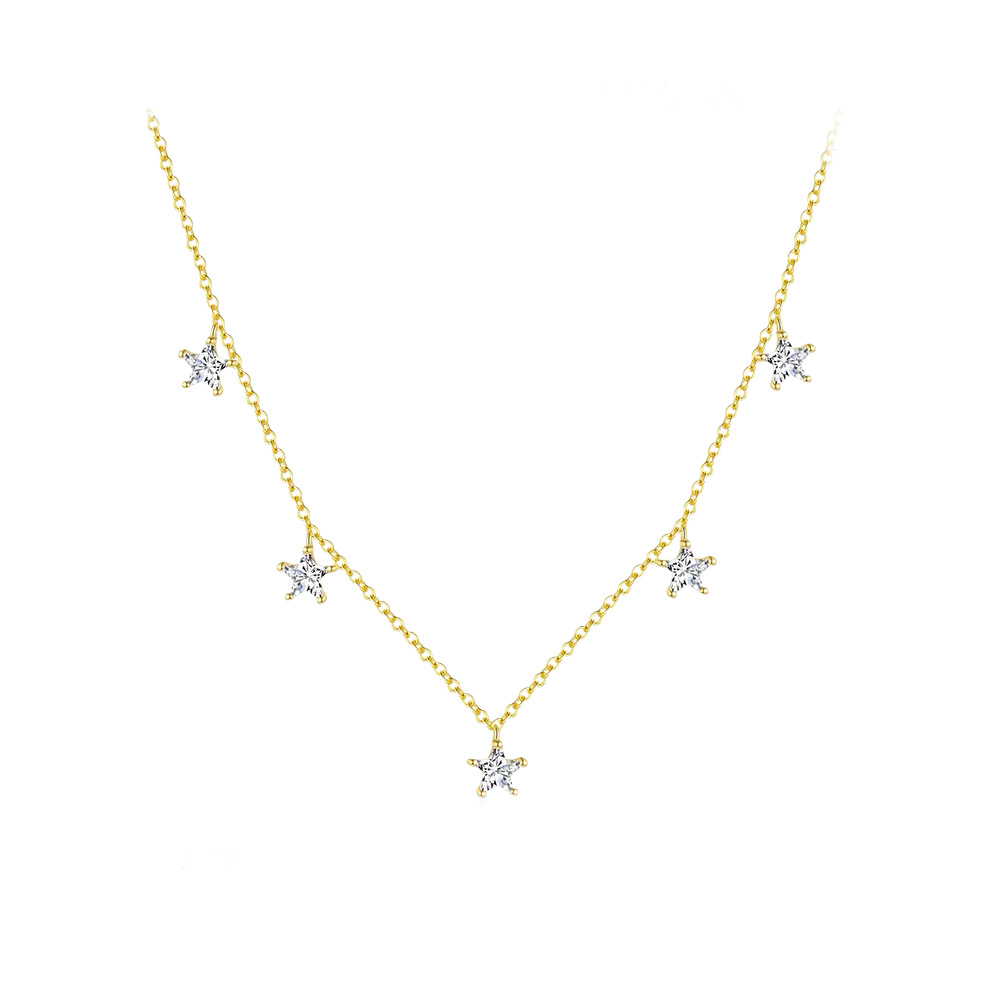 Cadena de plata 925 con baño de oro y dijes de zircones de estrellas colgantes